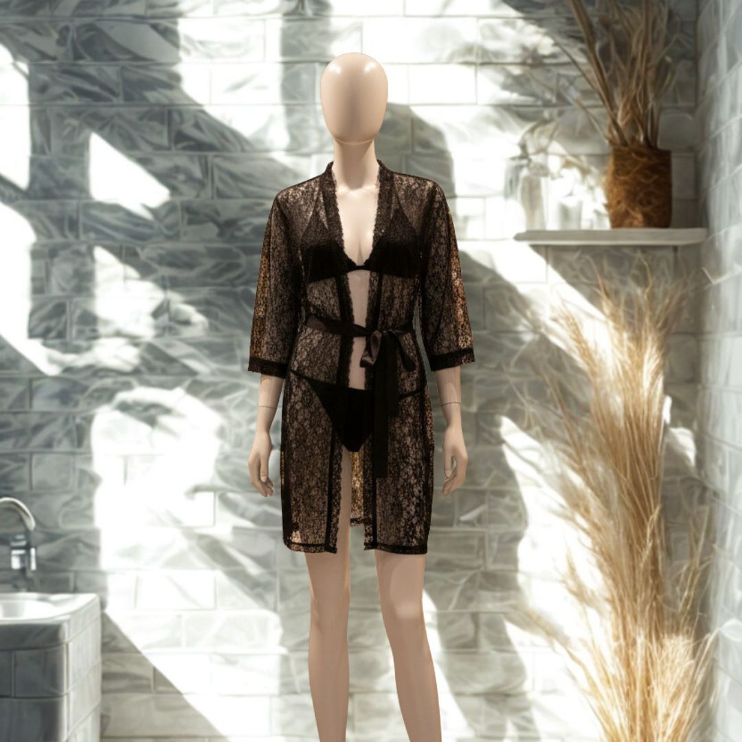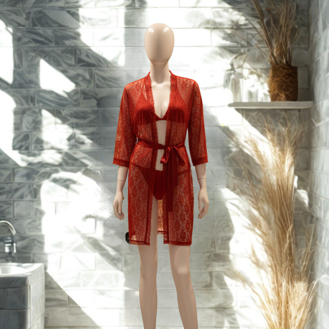 Elegant Robe/Gown: The sheer gown features a tie-waist design, enabling you to customize the fit to your liking.